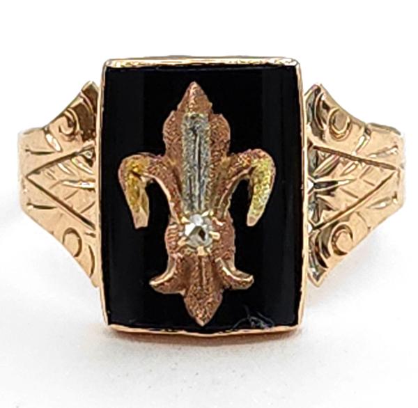 10Kt YG Onyx/ Dia Fleur-de-lis