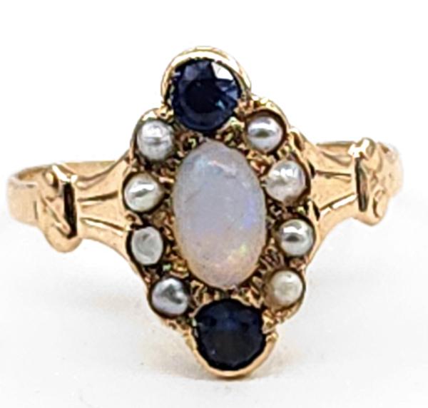 10Kt.YG Pearl Sapphire/Opal