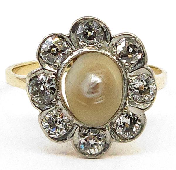 14K Y/WG Dia- OldMine/Pearl