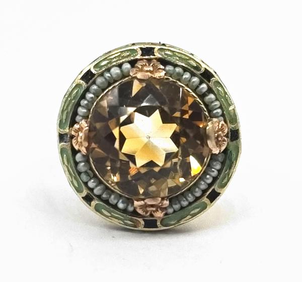 14KYG Citrine /Enamel/Pearl